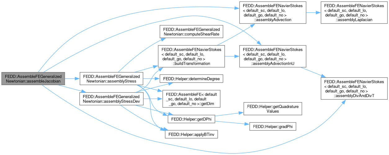 Assembly function for neumann boundary term - If we want to have same outflow boundary condition as for the Newtonian case (Laplace operator) we have to subtract boundary integral term see @article{Pacheco2021, abstract = {The matter of appropriate boundary conditions for open or truncated outflow regions in internal flow is still focus of discussion and research. In most practical applications, one can at best estimate mean pressure values or flow rates at such outlets. In the context of finite element methods, it is known that enforcing mean pressures through the pseudo-tractions arising from the Laplacian Navier-Stokes formulation yields accurate, physically consistent solutions. Nevertheless, when generalised Newtonian fluid models are considered, the resulting non-uniform viscosity fields render the classical Laplacian formulation inadequate. Thus, it is common practice to use the socalled stress-divergence formulation with natural boundary conditions known for causing nonphysical outflow behaviour. In order to overcome such a limitation, this work presents a novel mixed variational formulation that can be seen as a generalisation of the Laplacian Navier-Stokes form to fluids with shear-rate-dependent viscosity, as appearing in hemodynamic and polymeric flows. By appropriately manipulating the viscous terms in the variational formulation and employing a simple projection of the constitutive law, it is possible to devise a formulation with the desired natural boundary conditions and low computational complexity. Several numerical examples are presented to showcase the potential of our method, revealing improved accuracy and robustness in comparison with the state of the art.}, author = {Pacheco, Douglas R Q and Steinbach, Olaf}, doi = {10.51375/ijcvse.2021.1.6}, file = {:home/user/.local/share/data/Mendeley Ltd./Mendeley Desktop/Downloaded/Pacheco, Steinbach - 2021 - On outflow boundary conditions in finite element simulations of non-Newtonian internal flows.pdf:pdf}, journal = {International Journal of Computing and Visualization in Science and Engineering}, mendeley-groups = {DoctoralThesis/Numerical Fluid Dynamics/NonNewtonian/Boundary_Conditions}, number = {April}, title = {{On outflow boundary conditions in finite element simulations of non-Newtonian internal flows}}, year = {2021} }.